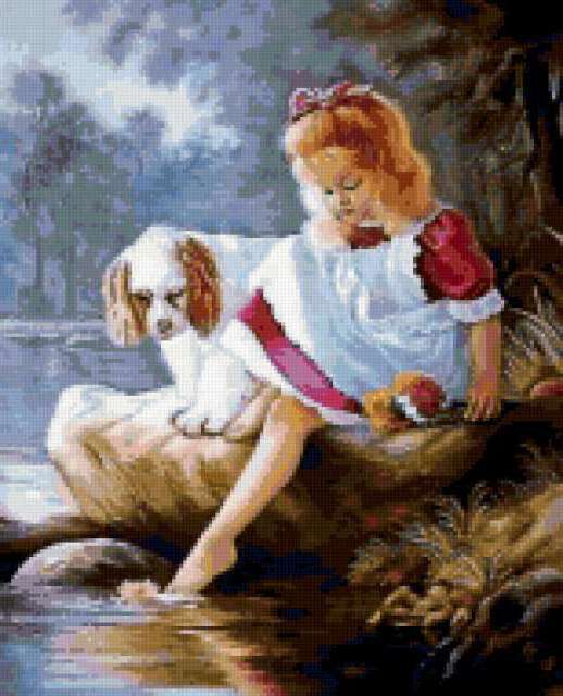 Ориентировочно так, схема вышивки «Variant 6», созданная автором Lamisa, будет выглядеть при отшиве на канве. Размер данной вышивки равен 154x190 крестов, при этом используется 76 цветов. Ключевые слова, по которым можно найти эту схему: природа, животные, собаки, devochka. Также, вы можете взглянуть на оригинальную картинку, соответствующую данной схеме вышивки.