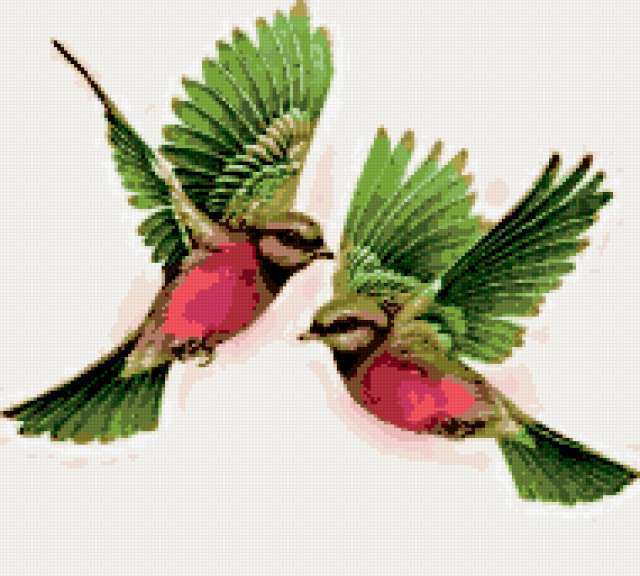 Ориентировочно так, схема вышивки «Variant 7», созданная автором Lamisa, будет выглядеть при отшиве на канве. Размер данной вышивки равен 190x171 крестов, при этом используется 33 цветов. Ключевые слова, по которым можно найти эту схему: птицы, pticy, пара. Также, вы можете взглянуть на оригинальную картинку, соответствующую данной схеме вышивки.