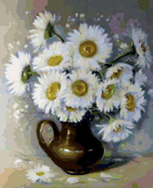 Ориентировочно так, схема вышивки «Variant 7», созданная автором Lamisa, будет выглядеть при отшиве на канве. Размер данной вышивки равен 154x189 крестов, при этом используется 63 цветов. Ключевые слова, по которым можно найти эту схему: цветы, cvety, букеты. Также, вы можете взглянуть на оригинальную картинку, соответствующую данной схеме вышивки.
