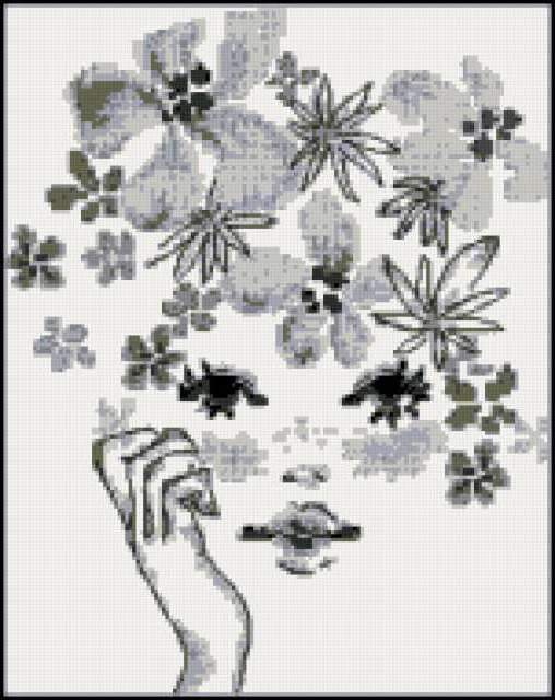 Ориентировочно так, схема вышивки «Variant 8», созданная автором Lamisa, будет выглядеть при отшиве на канве. Размер данной вышивки равен 151x190 крестов, при этом используется 8 цветов. Ключевые слова, по которым можно найти эту схему: цветы, девушка. Также, вы можете взглянуть на оригинальную картинку, соответствующую данной схеме вышивки.