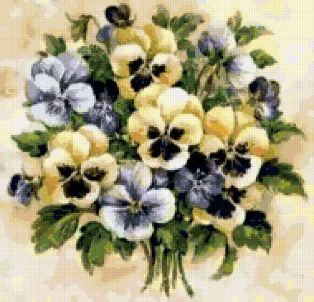 Ориентировочно так, схема вышивки «Variant 8», созданная автором Lamisa, будет выглядеть при отшиве на канве. Размер данной вышивки равен 190x183 крестов, при этом используется 57 цветов. Ключевые слова, по которым можно найти эту схему: цветы, cvety, подушка. Также, вы можете взглянуть на оригинальную картинку, соответствующую данной схеме вышивки.