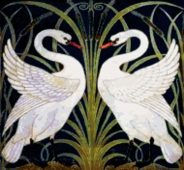 Ориентировочно так, схема вышивки «Variant 8», созданная автором Lamisa, будет выглядеть при отшиве на канве. Размер данной вышивки равен 190x176 крестов, при этом используется 73 цветов. Ключевые слова, по которым можно найти эту схему: птицы, пара, подушка. Также, вы можете взглянуть на оригинальную картинку, соответствующую данной схеме вышивки.