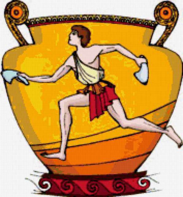 Ориентировочно так, схема вышивки «Vase», созданная автором aniela, будет выглядеть при отшиве на канве. Размер данной вышивки равен 177x190 крестов, при этом используется 60 цветов. Ключевые слова, по которым можно найти эту схему: myth. Также, вы можете взглянуть на оригинальную картинку, соответствующую данной схеме вышивки.