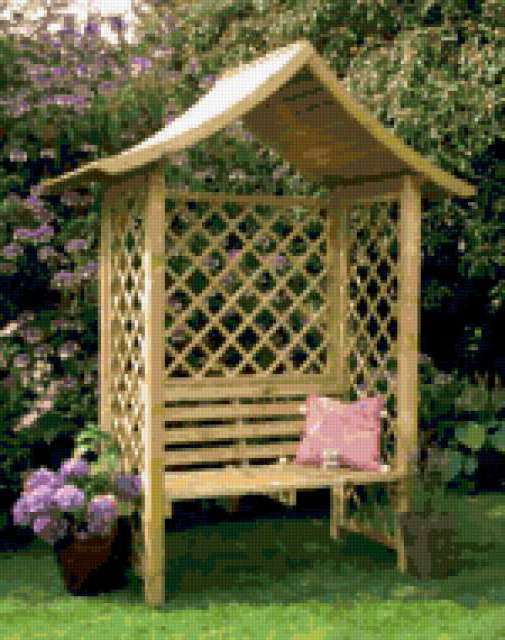 Ориентировочно так, схема вышивки «Victorian Arbour», созданная автором iborissova, будет выглядеть при отшиве на канве. Размер данной вышивки равен 150x190 крестов, при этом используется 73 цветов. Ключевые слова, по которым можно найти эту схему: сад. Также, вы можете взглянуть на оригинальную картинку, соответствующую данной схеме вышивки.