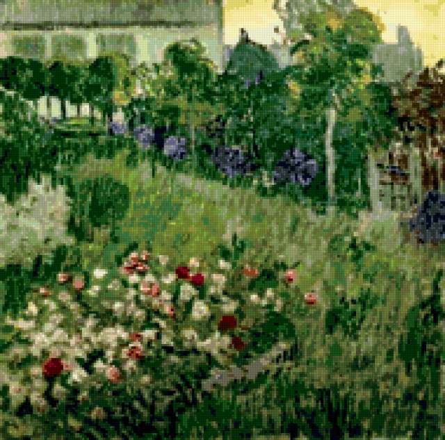 Ориентировочно так, схема вышивки «Vincent van Gogh », созданная автором AllaBira, будет выглядеть при отшиве на канве. Размер данной вышивки равен 190x188 крестов, при этом используется 68 цветов. Ключевые слова, по которым можно найти эту схему: Village. Также, вы можете взглянуть на оригинальную картинку, соответствующую данной схеме вышивки.