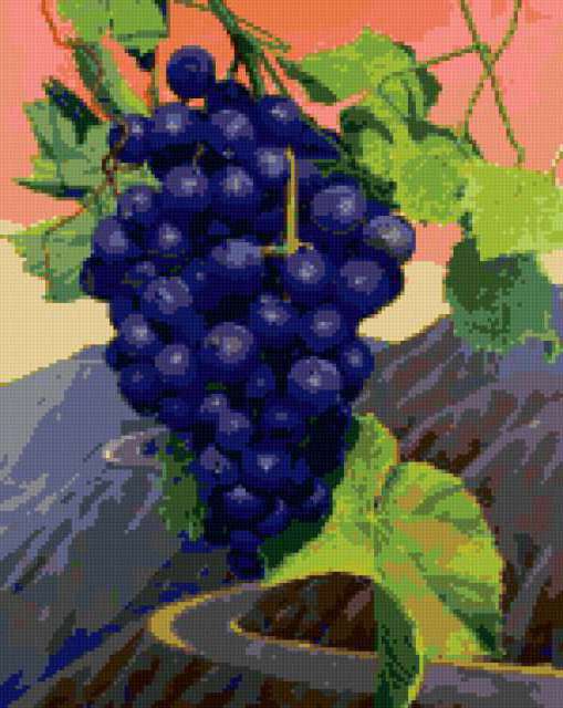 Ориентировочно так, схема вышивки «Vinograd», созданная автором lukrecija12, будет выглядеть при отшиве на канве. Размер данной вышивки равен 149x187 крестов, при этом используется 32 цветов. Ключевые слова, по которым можно найти эту схему: frukty. Также, вы можете взглянуть на оригинальную картинку, соответствующую данной схеме вышивки.