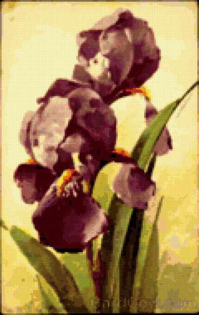 Ориентировочно так, схема вышивки «Violets», созданная автором AllaBira, будет выглядеть при отшиве на канве. Размер данной вышивки равен 120x190 крестов, при этом используется 65 цветов. Ключевые слова, по которым можно найти эту схему: vintage. Также, вы можете взглянуть на оригинальную картинку, соответствующую данной схеме вышивки.