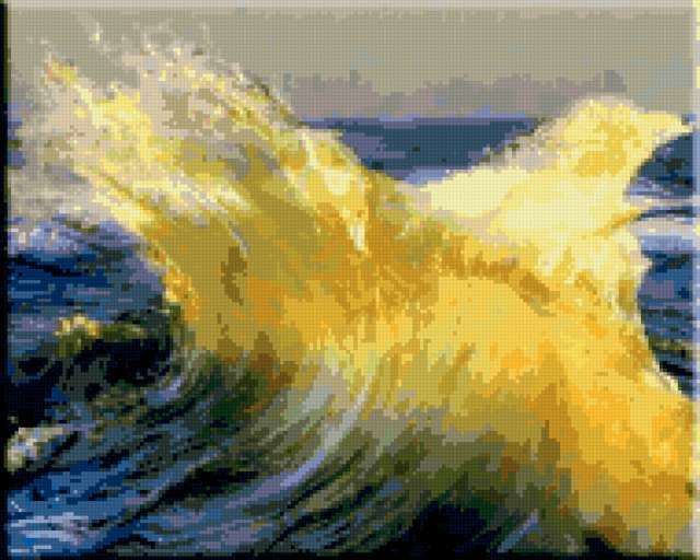 Ориентировочно так, схема вышивки «Volna», созданная автором lukrecija12, будет выглядеть при отшиве на канве. Размер данной вышивки равен 190x152 крестов, при этом используется 50 цветов. Ключевые слова, по которым можно найти эту схему: raznoe. Также, вы можете взглянуть на оригинальную картинку, соответствующую данной схеме вышивки.