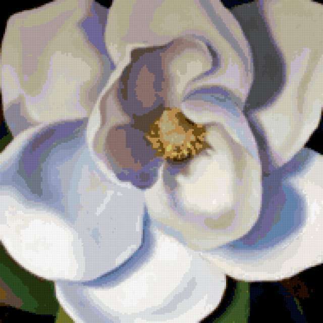 Ориентировочно так, схема вышивки «White Magnolia», созданная автором pandreevska, будет выглядеть при отшиве на канве. Размер данной вышивки равен 190x190 крестов, при этом используется 53 цветов. Ключевые слова, по которым можно найти эту схему: цветы, рисунок, картина, декорация, white. Также, вы можете взглянуть на оригинальную картинку, соответствующую данной схеме вышивки.
