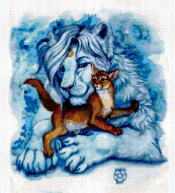 Ориентировочно так, схема вышивки «Wildcat», созданная автором aniela, будет выглядеть при отшиве на канве. Размер данной вышивки равен 173x190 крестов, при этом используется 67 цветов. Ключевые слова, по которым можно найти эту схему: wildlife, animals, животные. Также, вы можете взглянуть на оригинальную картинку, соответствующую данной схеме вышивки.