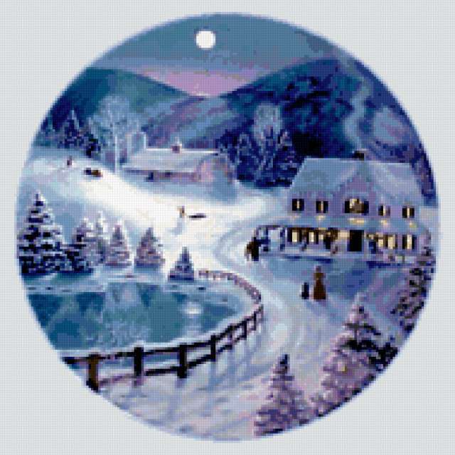 Ориентировочно так, схема вышивки «Winter landscape», созданная автором aniela, будет выглядеть при отшиве на канве. Размер данной вышивки равен 190x190 крестов, при этом используется 67 цветов. Ключевые слова, по которым можно найти эту схему: winter, пейзаж, landscape, зима. Также, вы можете взглянуть на оригинальную картинку, соответствующую данной схеме вышивки.