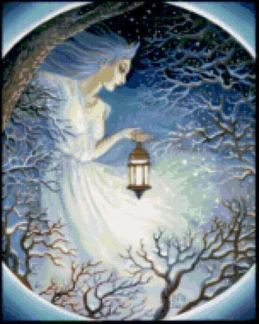 Ориентировочно так, схема вышивки «Winter», созданная автором aniela, будет выглядеть при отшиве на канве. Размер данной вышивки равен 152x190 крестов, при этом используется 73 цветов. Ключевые слова, по которым можно найти эту схему: lady, woman, женщина, девушка, дамa. Также, вы можете взглянуть на оригинальную картинку, соответствующую данной схеме вышивки.