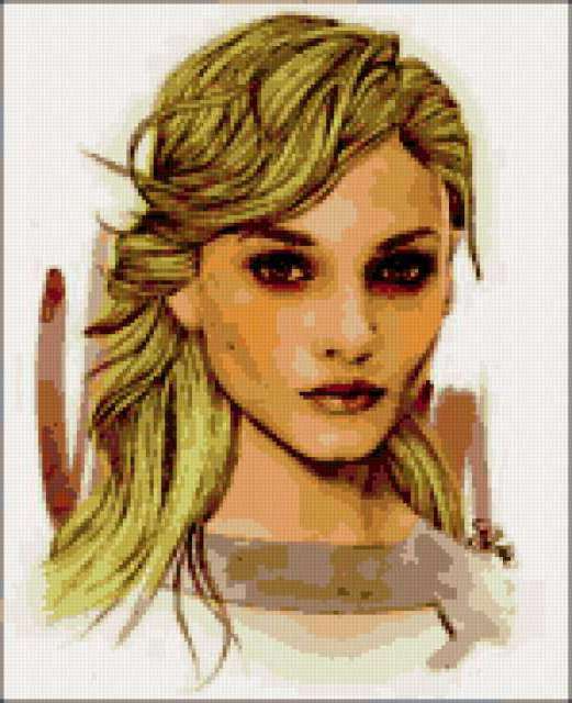 Ориентировочно так, схема вышивки «Woman», созданная автором lukrecija12, будет выглядеть при отшиве на канве. Размер данной вышивки равен 149x183 крестов, при этом используется 37 цветов. Ключевые слова, по которым можно найти эту схему: woman. Также, вы можете взглянуть на оригинальную картинку, соответствующую данной схеме вышивки.