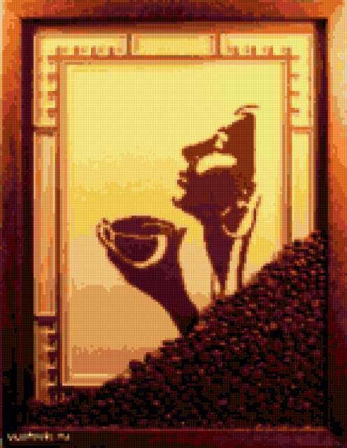 Ориентировочно так, схема вышивки «Women with caffe», созданная автором lukrecija12, будет выглядеть при отшиве на канве. Размер данной вышивки равен 145x187 крестов, при этом используется 25 цветов. Ключевые слова, по которым можно найти эту схему: women. Также, вы можете взглянуть на оригинальную картинку, соответствующую данной схеме вышивки.
