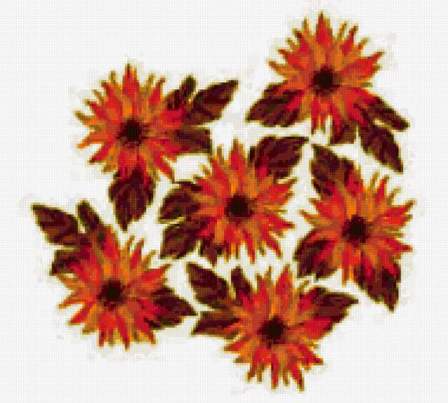 Ориентировочно так, схема вышивки «Yellow flowers», созданная автором lukrecija12, будет выглядеть при отшиве на канве. Размер данной вышивки равен 190x171 крестов, при этом используется 45 цветов. Ключевые слова, по которым можно найти эту схему: flower. Также, вы можете взглянуть на оригинальную картинку, соответствующую данной схеме вышивки.