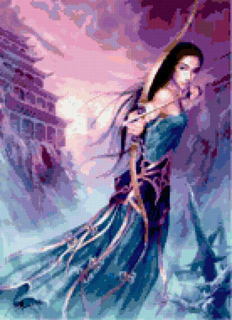 Ориентировочно так, схема вышивки «Yuehui Tang », созданная автором burova, будет выглядеть при отшиве на канве. Размер данной вышивки равен 138x190 крестов, при этом используется 64 цветов. Ключевые слова, по которым можно найти эту схему: картина, девушка, фэнтези. Также, вы можете взглянуть на оригинальную картинку, соответствующую данной схеме вышивки.