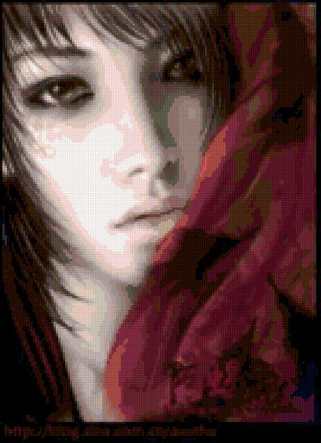 Ориентировочно так, схема вышивки «Zenshina», созданная автором lukrecija12, будет выглядеть при отшиве на канве. Размер данной вышивки равен 138x190 крестов, при этом используется 37 цветов. Ключевые слова, по которым можно найти эту схему: zenshina, vostok. Также, вы можете взглянуть на оригинальную картинку, соответствующую данной схеме вышивки.