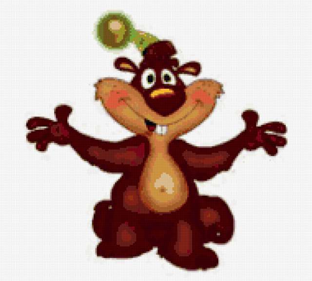 Ориентировочно так, схема вышивки «Zveriok», созданная автором lukrecija12, будет выглядеть при отшиве на канве. Размер данной вышивки равен 190x171 крестов, при этом используется 38 цветов. Ключевые слова, по которым можно найти эту схему: multfilmy. Также, вы можете взглянуть на оригинальную картинку, соответствующую данной схеме вышивки.
