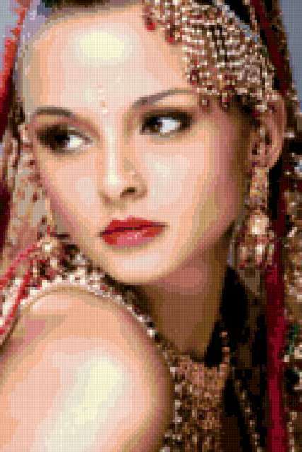 Ориентировочно так, схема вышивки «Zvezda vostoka», созданная автором lukrecija12, будет выглядеть при отшиве на канве. Размер данной вышивки равен 121x181 крестов, при этом используется 51 цветов. Ключевые слова, по которым можно найти эту схему: zenshina, vostok. Также, вы можете взглянуть на оригинальную картинку, соответствующую данной схеме вышивки.
