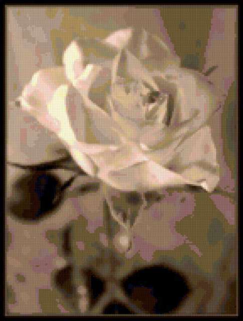 Ориентировочно так, схема вышивки «__RoSe__», созданная автором Polisha_FEYA, будет выглядеть при отшиве на канве. Размер данной вышивки равен 144x190 крестов, при этом используется 40 цветов. Ключевые слова, по которым можно найти эту схему: роза, цветок, растение, флора. Также, вы можете взглянуть на оригинальную картинку, соответствующую данной схеме вышивки.